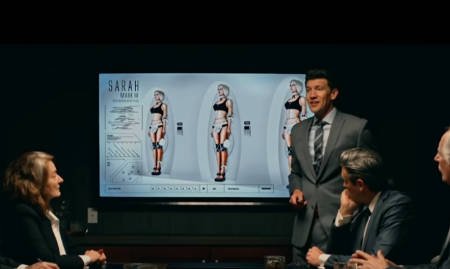 In short science fiction movie A Week With Rebecca by Marcus Shenn, a robotics company executive pushes for the development of an android companionship model and unexpectedly spends a week with her.