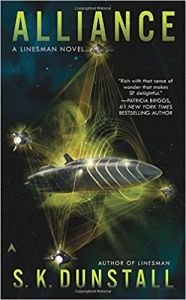‘Alliance’ is the second ‘Linesman’ novel by S. K. Dunstall (sisters Sherylyn and Karen Dunstall). There’s no break in the timeline between the two books so it picks up where ‘Linesman’ left off. The story opens with Captain Selma Kari Wang on board her spaceship. They were on assignment to test out some new weapons for Gate Union when they receive a call from their planetary government with some important news. The ship and crew hail from the world of Nove Tahiti which was in the Gate Union amalgamation of worlds but has now seceded from Gate Union to join the New Alliance of Worlds which includes Lancia.