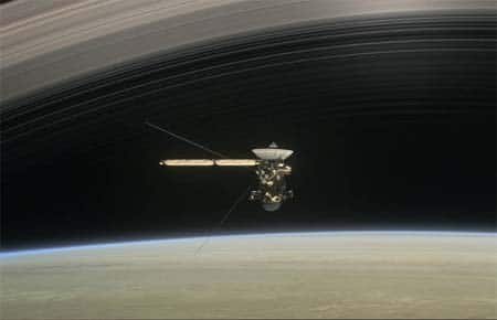 Cassini on final orbit around Saturn.