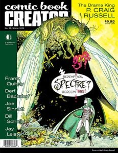 The biggest section of this issue is devoted to an interview with comicbook artist, P. Craig Russell. Jon B. Cooke looks at Russell’s upbringing in Ohio and how he got started working for Dan Atkins before branching out on his own. Looking at Russell’s body of work, with so much fantasy-orientated, probably explains why I haven’t seen much of it. Hearing about his love for classical music, though, I can appreciate how he sees his work under that light and how he goes through various stages to improve his own work..