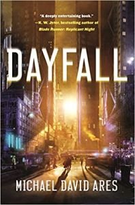 ‘Dayfall’ by Michael David Ares is an odd book. A detective story that is pretending to be a Science Fiction. Detective Jon Phillips, working off duty, tracks down and stops a serial murderer. His boss is approached by the mayor of New York to reassign Phillips to capture a serial murderer there.