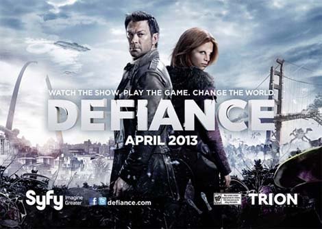 Another trailer for the SyFy TV series Defiance – Earth invaded and taken over by hundreds of different alien races – humanity reduced to the position of Native Americans on their own soil. This pup is from the fertile mind of Farscape‘s Rockne S. O’Bannon… you can tell, can’t you!