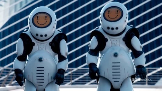 Although hinted at in the opening scene what has been killing the humans on this colony, the Doctor and Bill can only look and try to put things together. With such a limited cast, this looks like a bottle show and both actors with a mountain of dialogue to learn. In fact, this is the most dialogue I’ve seen in a ‘Doctor Who’ story for some time. The only real complaint is that it’s a slow plot again and you have to wonder if the younger members of the audience will be enjoying it or just be looking forward to owning one of the small robots as merchandise somewhere down the line. After all, the emojibots aren’t the actual menace. All they do is convey emotion and you should smile around them if you know what’s good for you. What you don’t really see up close is the swarm that can come down and devour you if you’re not happy although quite why they can’t do anything with the bones isn’t explained.