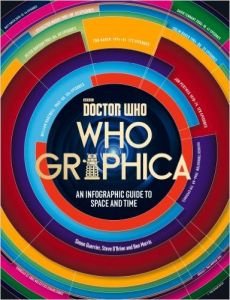 There are the occasional books I look at and wonder who they are targeted at. As my fellow reviewer, John Rivers, pointed out, there is usually a batch of ‘Doctor Who’ books put out to cash in on the yuletide market this time of year. Thinking about that, he’s probably right although I’ve also seen other books on the subject out at different times as well. So, with ‘Doctor Who: Who Graphica’ by Simon Guerrier, Steve O’Brien and illustrated by Ben Morris, we have the sub-titled ‘An Infographic Guide To Space And Time’. I think it is primarily for parents or relatives who think they are buying something as a stocking filler for sprogs. One only has to hope that the younger viewers have seen all the early shows because you are exposed to all kinds of data that they might not have heard of or seen on DVD.