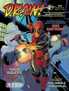 The opening 40 pages of the latest issue of ‘Draw!’ is an interview between editor Mike Manley and comicbook artist Mike Hawthorne where they are literally talking shop, comparing notes on everything from pencil technique (Hawthorne uses 0.3mm HB autopencils which explains his fine lines), using Photoshop to darken lines, perspective, teaching to comicbook conventions to Kirby’s dislike of the change in the size of original art pages.