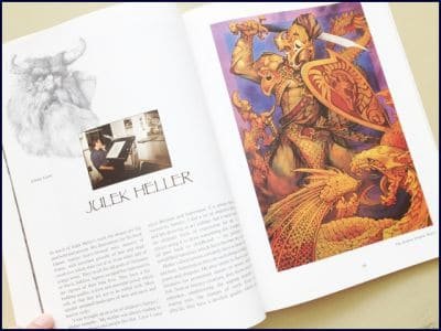 Melvyn Grant is a firm believer in oils although whether it’s the paper used, you might think he did his work here in acrylics. If you have a look at his website, his paintings look a little richer there and might be one of the reasons why Paper Tiger back then changed to glossy paper, not so much for the gloss but in how it handled the colours given to it.