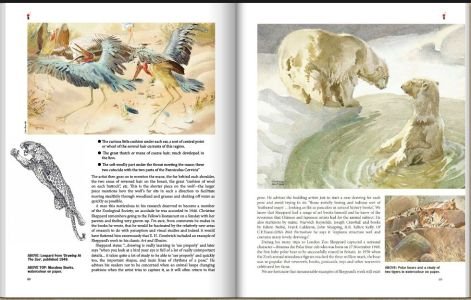 Raymond Shepherd is another artist who died fairly young. The magazine spells his name ‘Sheppard’ but if you’re looking up his books, use my spelling. His paintings of animals show here, relying on zoos to study them are certainly eye-catching. Although the text reveals he did a few books explaining how to paint birds, there aren’t too many examples but I can see his brushstroke technique could quickly bring them to life. If you’re of a particular generation, he was also the chap who illustrated the tiger for the Esso adverts. His figure work is also very impressive and a demonstration of drawing from real life is always a good option.