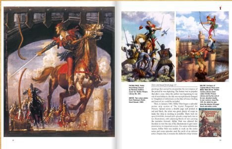 The opening artist is John Millar-Watt (1895-1975) who could turn his hand to any medium. He spent 30 years on his own creation ‘Pop’ for the ‘Daily Sketch’ and it took a while to break free from that to get back into serious illustration in period dramas using pen and ink and watercolour. His range was startling and hardly surprising that ‘Look & Learn’ got him. Writing about him are David Ashford and Norman Wright and I agree with them that Millar-Watt had a way with capturing action in a panel and attention to detail.