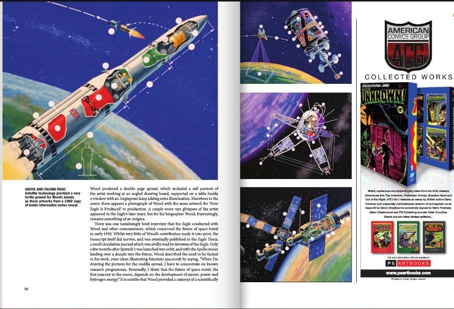 The name L. Ashwell Wood might not mean much but if I said he illustrated the cut-outs that were used in the original ‘Eagle’ comic and that were reprinted in a ‘Best Of The Eagle’ book a couple years back that if you didn’t buy then you certainly had a look at. The article by Jeremy Briggs and Peter Richardson looks at Wood’s life and the other material he did. Wood also got paid rather well for each cut-out painting compared to standard comic/magazine rates, which when you consider how many times they’ve been reprinted over the years looks like a good investment by the publisher. Looking at the samples here are still breath-taking, more so as you’re seeing them without text overlay although there are number bubbles done on the originals. There are even some of the early space rockets and satellites. Although other artists have stepped up to do cut-outs since, Wood was the original and makes this issue a worthwhile look.