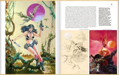 However, we first have a look at Enric aka Enric Torres-Prat, who really started off doing America SF book covers but got recruited by Jim Warren solely on a sketch that ultimately ended in 52 ‘Vampirella’ covers, a couple of which he has repainted over the years and shown here. His examples of other art, including Red Sonja, and a variety of women are a strong reminder that I must dilute my paint more. His works are a lesson to themselves.