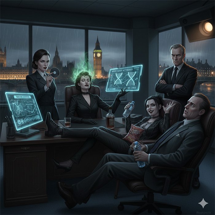 ‘Am I supposed to be listening in on this conversation?’ the head of MI5 asked suddenly. ‘This IS my office you’ve commandeered.’ Emphasis on ‘is’.