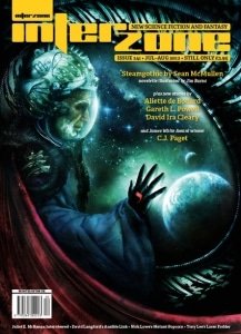 For those of you who don’t already know, ‘Interzone’ is the UK’s leading short fiction magazine for Science Fiction and fantasy. Although it is officially counted as a semi-professional magazine for the purposes of things like the Hugo Awards, it’s a high quality offering, publishing around five stories every two months, accompanied by several regular review columns and full colour artwork. Issue 241, which covered July and August of 2012, is slightly unusual because one of the published stories is a competition winner. The James White Award exists to identify talent amongst unpublished genre writers. The winner gets a cash prize, a trophy and publication of the winning story in ‘Interzone’. The winner of the 2011 award was Colum Paget and his story is published in this issue. It’s worth noting in passing that Mr. Paget was generous enough to give his cash prize back to the Award administrators in order to make the 2012 prize pot that much larger and so encourage more writers to enter the competition. I take my hat off to him.