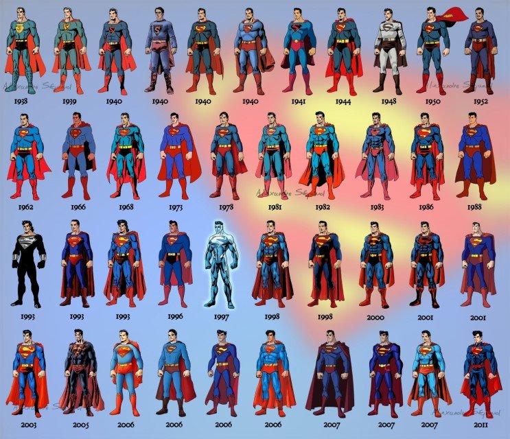 There have been modifications over the years. The most obvious with Superman was the change in the ‘S’ symbol on his chest. The original 1938 version wasn’t particularly enticing and the 1950s version gave it a tidy make-over.
