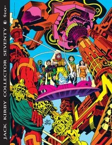 ‘Kirby Kinetics,’ the oft times interesting analysis of Jack’s art by Norris Burroughs, sort of follows the theme by focusing on seeds. There are panels from a 1960 story in Journey Into Mystery # 56 where a scientists discovers some seeds on another planet which grow into giant lizards. Then there’s the big seed pod from Fantastic Four # 66 which gave birth to Him, later Adam Warlock. Lastly, there’s a splash page from Eternals # 7 in which life-seeds are being manipulated by the big guys. All of this is described in detail by Burroughs but without the art to look at you can’t get a sense of it from this review.
