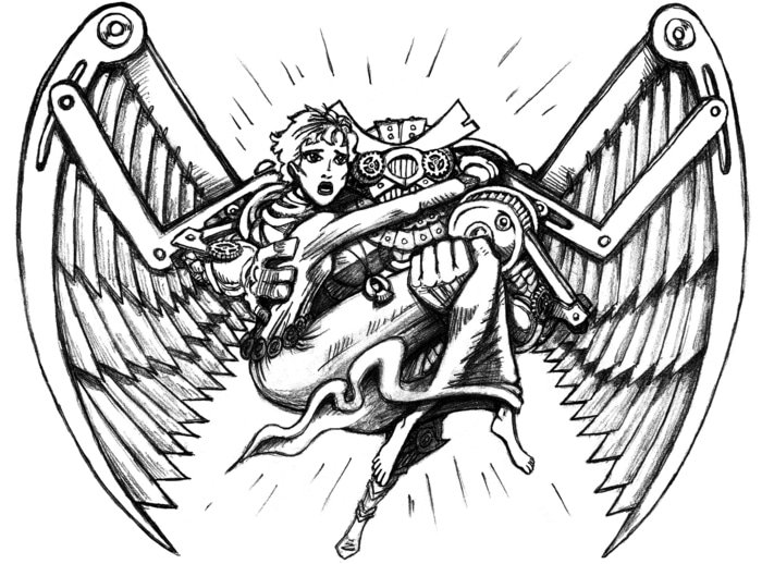 Is Monster of the Sky a follow-up to the most excellent novel The Court of the Air? Nope, but it is kinda steampunk, well, maybe clockpunk, anyway. It’s the kickstarter for a new fantasy with puppets movie (forget The Muppets… think The Dark Crystal), complete with princes sporting clockwork exo-wings.
