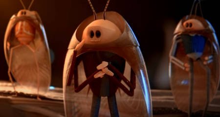 In the animated short science fiction film Rocket Roaches by Mick Mahler, a bunch of intelligent cockroaches build a rocket to fly to the Moon in the far future.