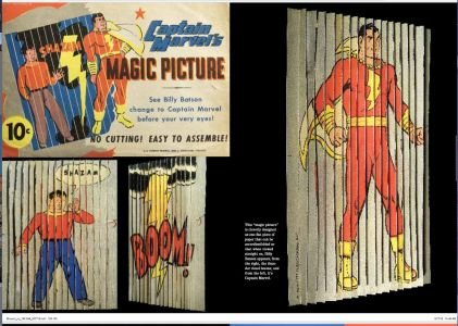 Fawcett Comics created their own brand of super-hero in the 1940s. They called him Captain Thunder before thinking Captain Marvellous and ultimately Captain Marvel, affectionately called the Big Red Cheese by his many fans on account of his attire and smile. Although seeing the early strips here, he doesn’t always smile. It’s explained in this book, ‘Shazam! The Golden Age Of The World’s Mightiest Mortal’ written by Chip Kidd and photographer Geoff Spear, that his uniform was loosely based on a military dress uniform of that time period and his arm bands denoting his rank.