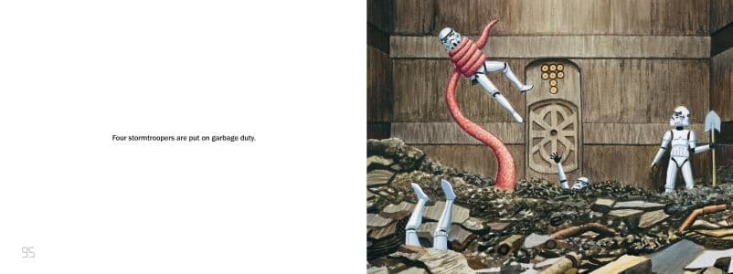 In Greg Stones’ admittedly funny book of illustrations, ‘Star Wars: 99 Stormtroopers Join The Empire’, the Empire’s finest, the stormtroopers, are put through the wringer as a whole ninety-nine of them sign-up for duty. In a series of mishaps, rebel attacks and acts of plain old stupidity the numbers of the stormtroopers are whittled away one-by-one.