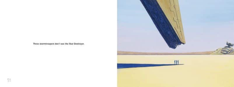 Published by Chronicle, the book is printed on glossy paper that does justice to the illustrations and is bound in a smooth, hardback cover. The book is horizontally wider than usual, reflecting Stones’ great landscape pictures, but also the widescreen ‘Star Wars’ setting.