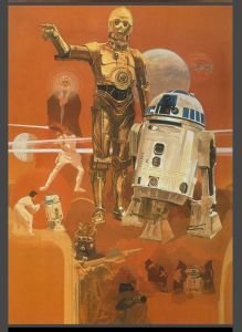 The next notebook is a Ralph McQuarrie special. The cover features the ‘Star Wars’ one sheet poster that McQuarrie devised during the film’s production as conceptual art, while the back cover illustration is more early pre-production work featuring early designs for Luke, Chewbacca and the Droids. The inside front cover is a black and white reproduction of the original cover for ‘Star Wars, From The Adventures Of Luke Skywalker’ that was released in 1976 before the arrival of the movie.