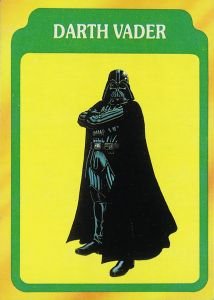 What’s also delightful to see is how the captions on the cards sometimes recall the old bubblegum cards sensationalism found in series such as ‘Mars Attacks’. For example, Vader standing at the end of the dining table on Cloud City is captioned with ‘HOST OF HORROR’ and Han’s freezing in carbonite is captioned with ‘END OF THE STAR WARRIORS?’ It is these juxtapositions of caption and image that present these familiar scenes in a new light.