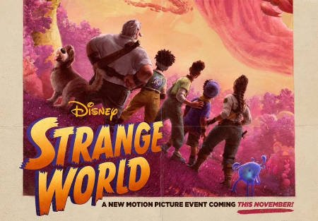 Here’s Strange World, a new original Disney animated science fiction film. Searcher Clade, the son of a space explorer, is voiced by Jake Gyllenhaal.