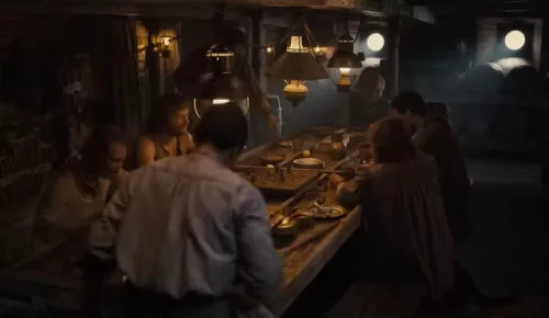 In a brave and totally original move, director André Øvredal decided to focus on a single chapter, “The Captain’s Log,” which chronicles the Demeter’s voyage, stalked by a mysterious dark presence. Because nothing screams excitement quite like a bunch of guys on a ship for an entire movie, right?