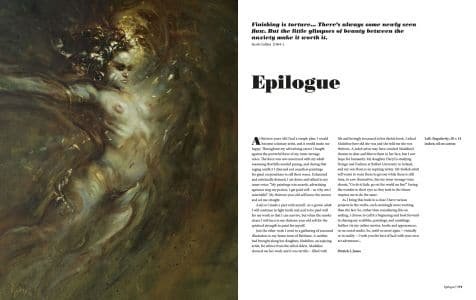 I loved his anecdote about only presenting roughs of paintings at publishing houses that you’d be happy to complete any of them than trying to direct a cover editor as to the one you prefer by detailing it the most. Likewise, the awareness of scale and when a painting is reduced in size, the background will be much of a blur but they don’t always see things like that. A further point is made that cover editors can also crop your painting to a bit they particularly like so don’t skimp on anything. Even when Jones says he isn’t teaching, you’re learning a lot about the industry and not to be too precious when selling a painting after all, these are the people are still your paying clients making use of and putting your work on a cover.