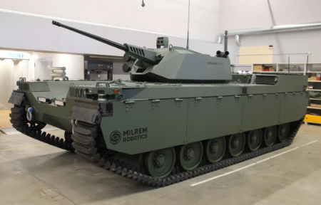 Built as a joint venture by Milrem Robotics and John Cockerill Defense, it is dropped into battle by parachute or heavy lift helicopter, then the AI fighting vehicle can back up infantry formations or operate independently, in unmanned formations.
