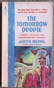 Judith Merril’s 1960 book ‘The Tomorrow People’ is set in 1976 and probably felt a long way off at the time. The space program has flourished and there is a base on the Moon. There have been two expeditions to Mars. The Russian one vanished without a trace. The American two-man team returns with one of them missing. Johnny Wendt’s log has 4 pages missing and despite his attempts to find his fellow astronaut, Doug Laughlin, failed and returned alone. Intensive tests could reveal nothing more and Wendt was returned to Earth, finally having a relationship with famed dancer Lisa Trovi, who suddenly takes up an interest in ESP.