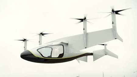 The wings are able to rotate 90 degrees, enabling the vehicle to take off or land vertically. The propellers on the wing can fold away once the craft has reached cruising height, reducing drag and cabin noise, with the craft relying upon the two rear propellers for thrust.